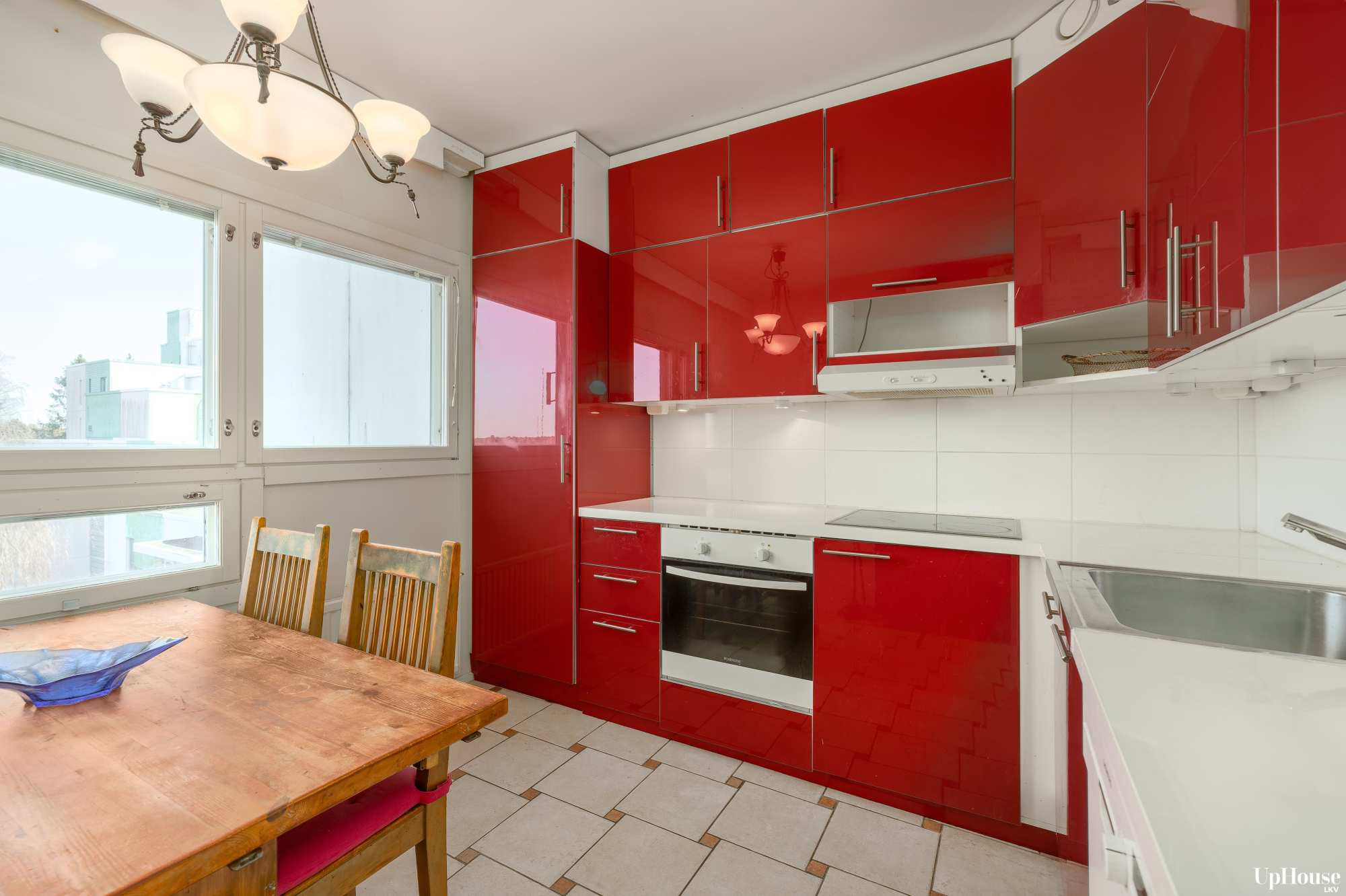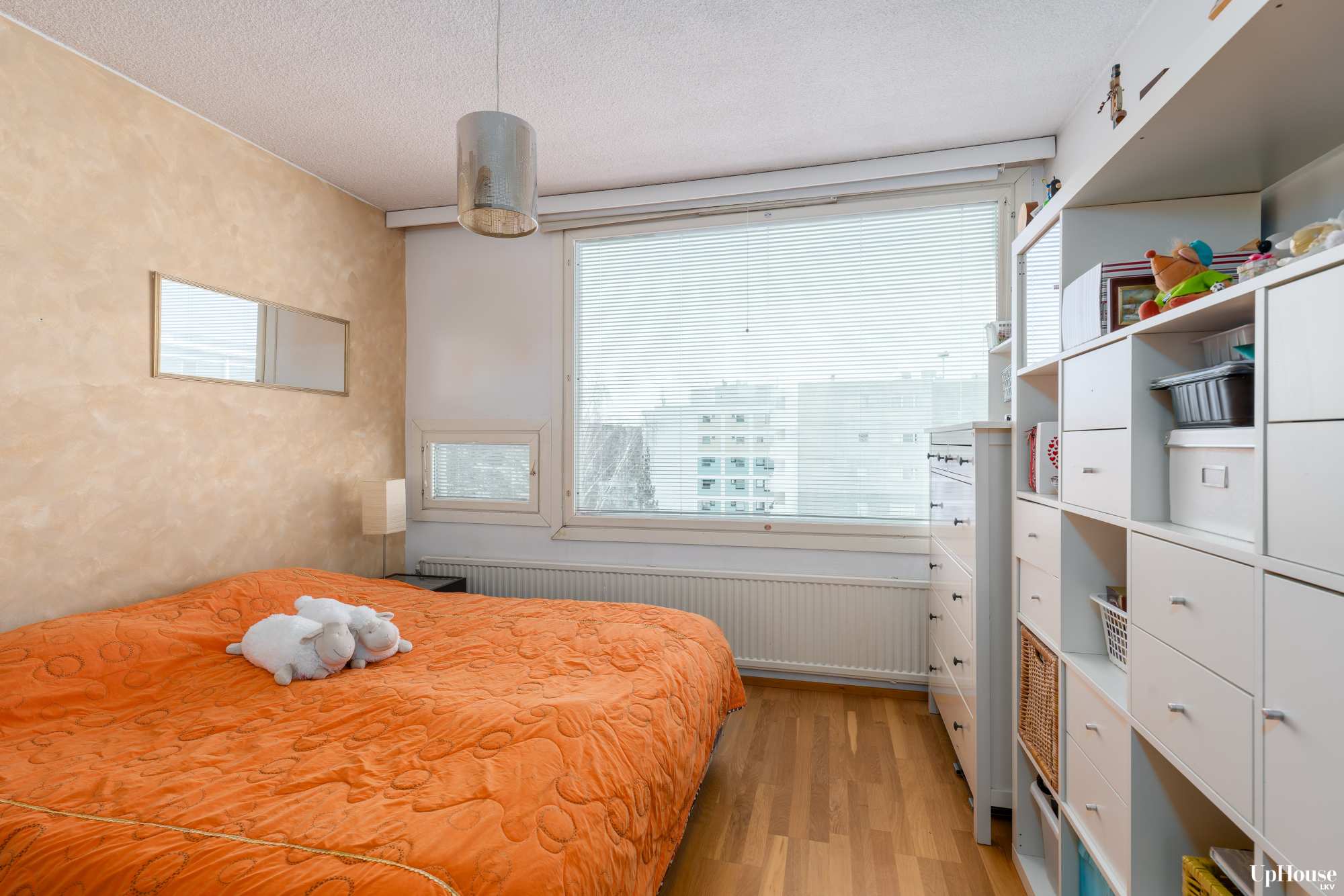 Asunnossa on kolme makuuhuonetta, erillinen wc ja tilava kylpyhuone, joka on varustettu pesukoneliitännällä. Keittiössä tilaa ruokailuryhmälle.