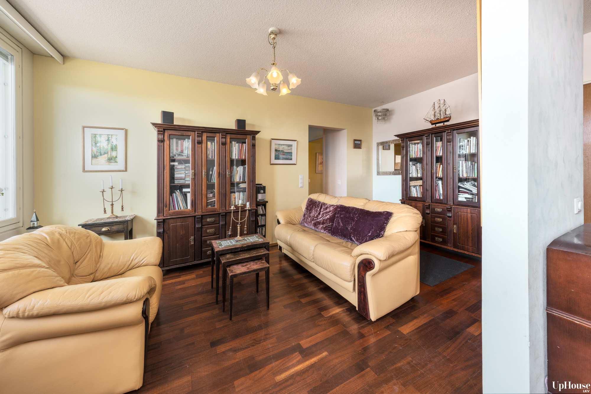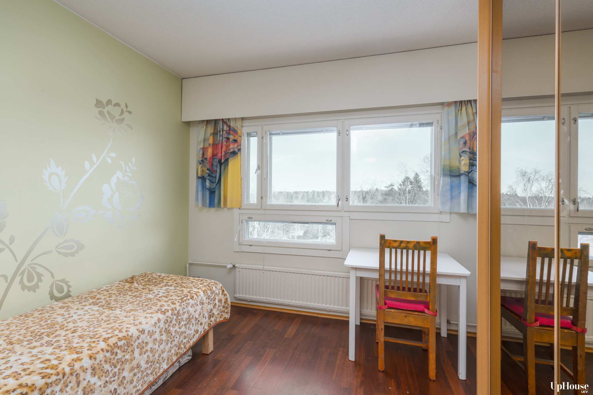 Tämä tilava ja valoisa asunto sijaitsee talon ylimmässä kerroksessa, tarjoten upeat näkymät ja rauhallisen asumisympäristön.