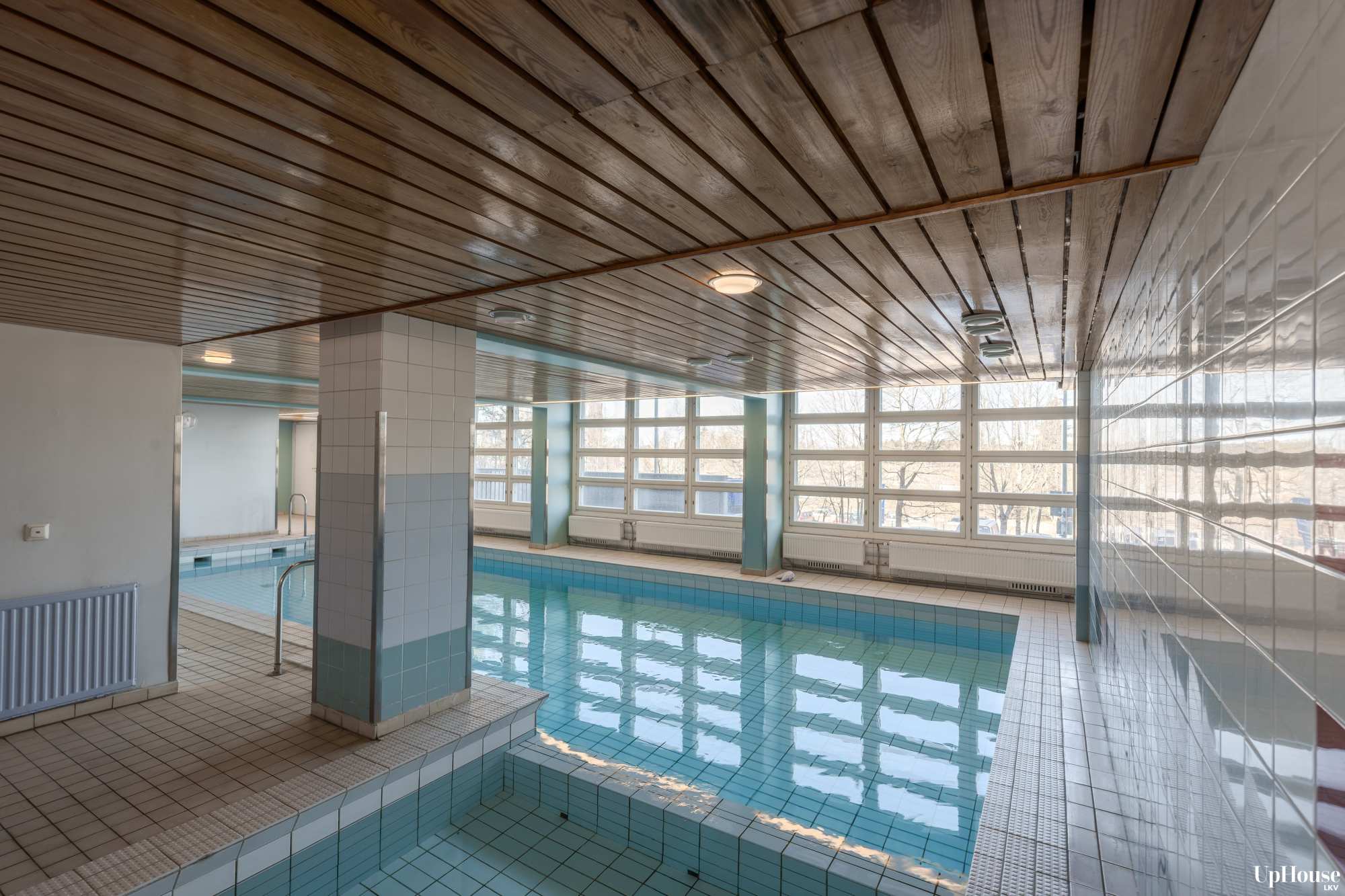 Taloyhtiöön kuuluu | Askarteluhuone, kellarikomero, uima-allas, pesutupa, mankeli, väestönsuoja, urheiluvälinevarasto, jäähdytetty kellari ja kuntosali |