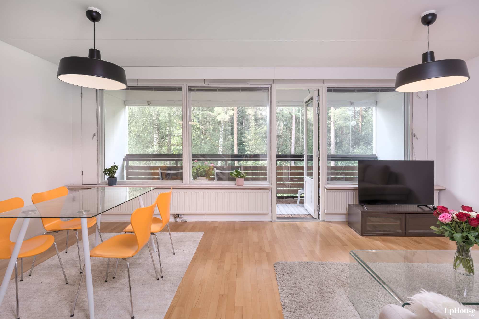 Tämä viehättävä rivitaloasunto Espoon Laajalahdessa tarjoaa tilavan ja toimivan kodin perheelle. Asunto sijaitsee rauhallisella alueella, josta avautuvat näkymät taloyhtiön vehreään pihapiiriin ja viereiseen metsään.