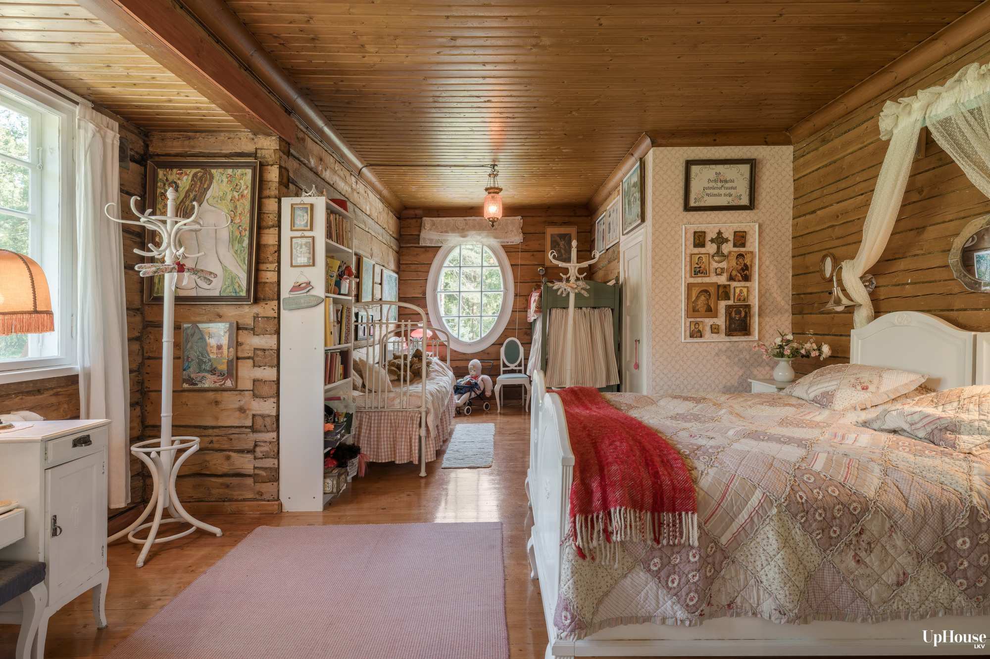 Makuuhuone | Alakerrassa 2 makuuhuonetta, yläkerrassa 4 + parvikamari. |