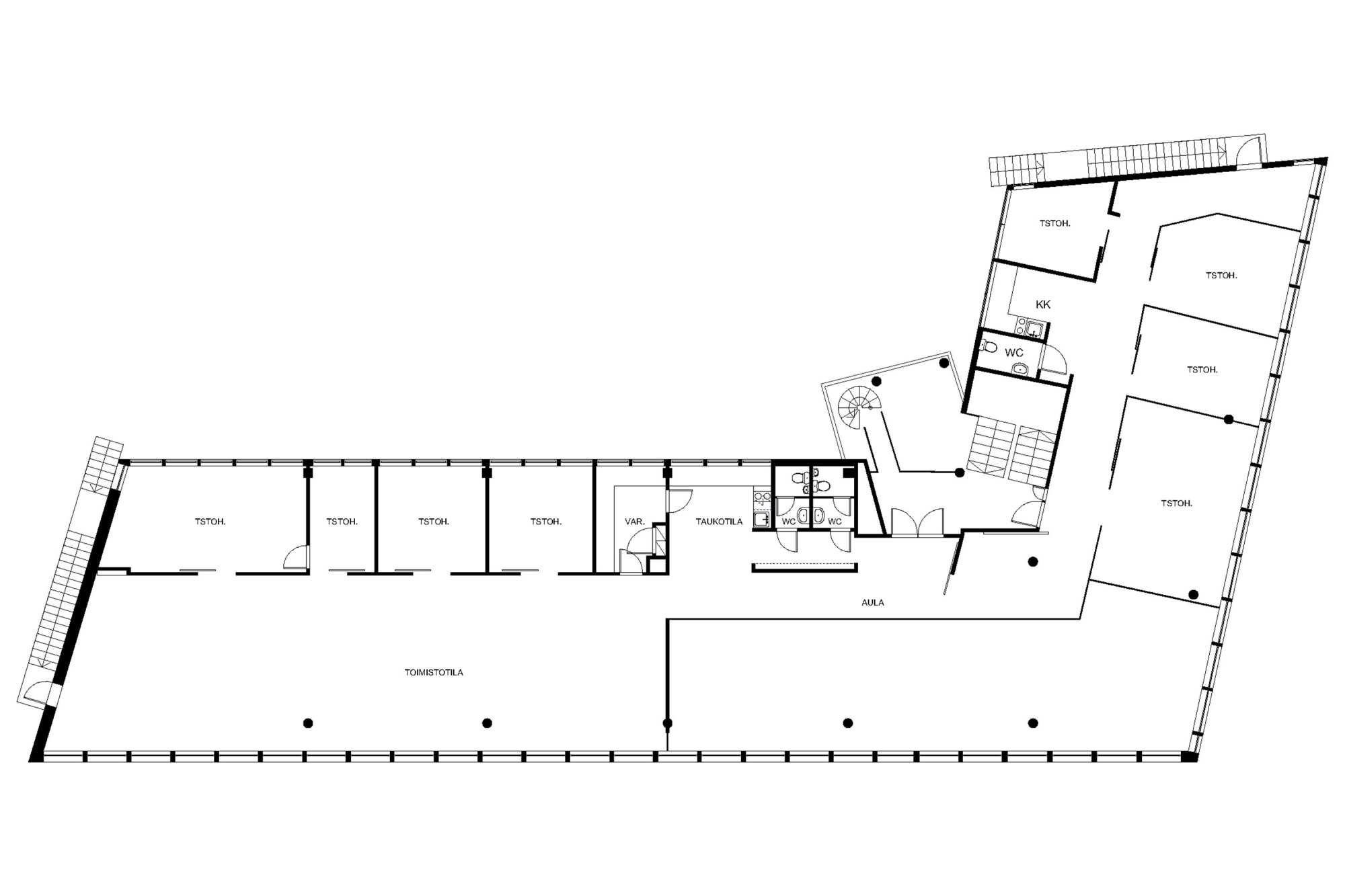 Toimistotilaa on saatavilla eri tarpeisiin 20-380 m² kahdessa kerroksessa, joten se on helposti muokattavissa yrityksesi toimintaan. Talossa on 18 toimistohuonetta (eri kokoisia) sekä avokonttoritilaa. Mahdollista myös vuokrata yritykselle tilakokonaisuus omalla sisäänkäynnillä.