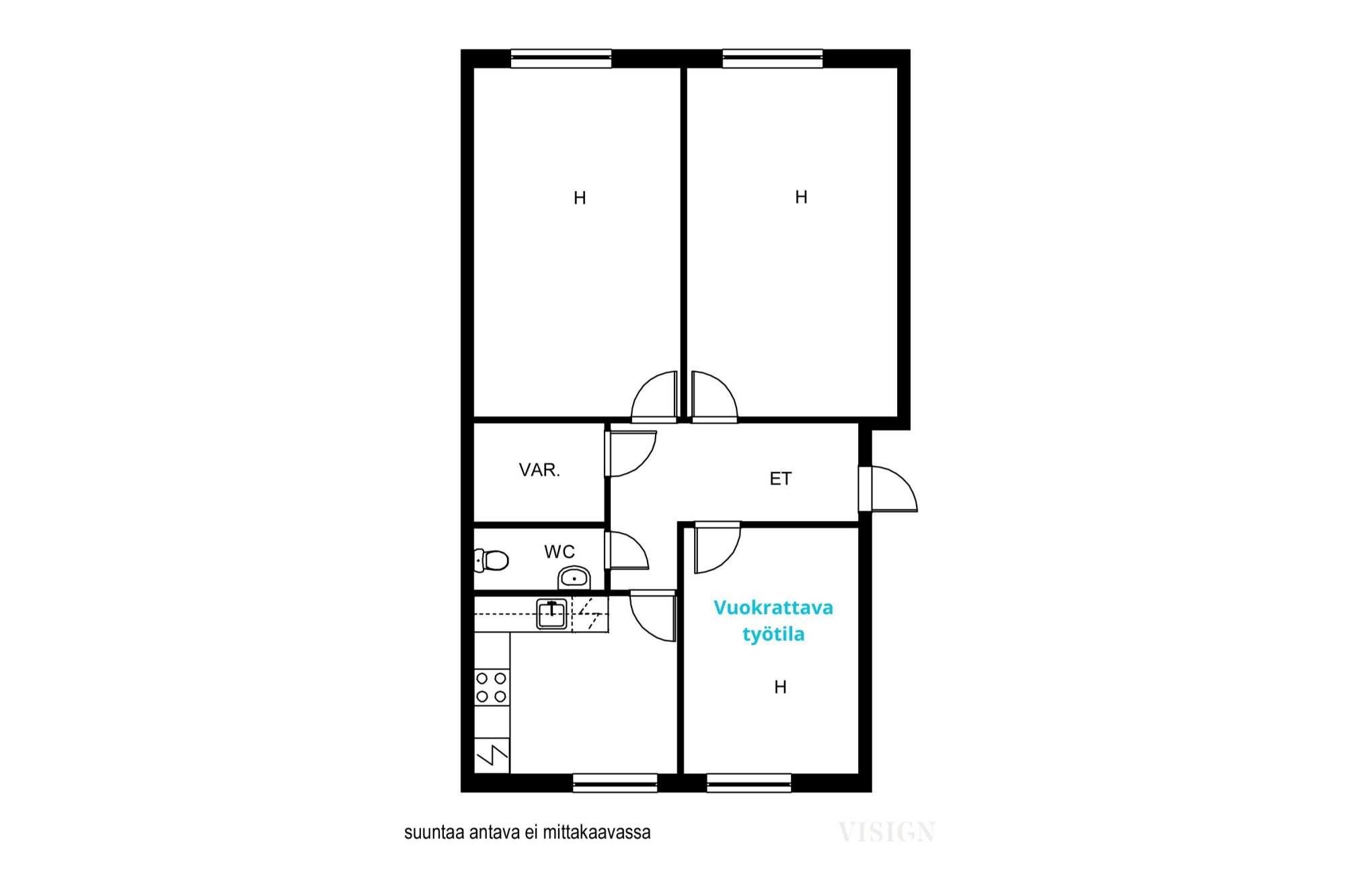 | Keittiön varustus | Jaettu keittiö, remontoitu 2023. Liesi/uuni: Induktioliesi |
